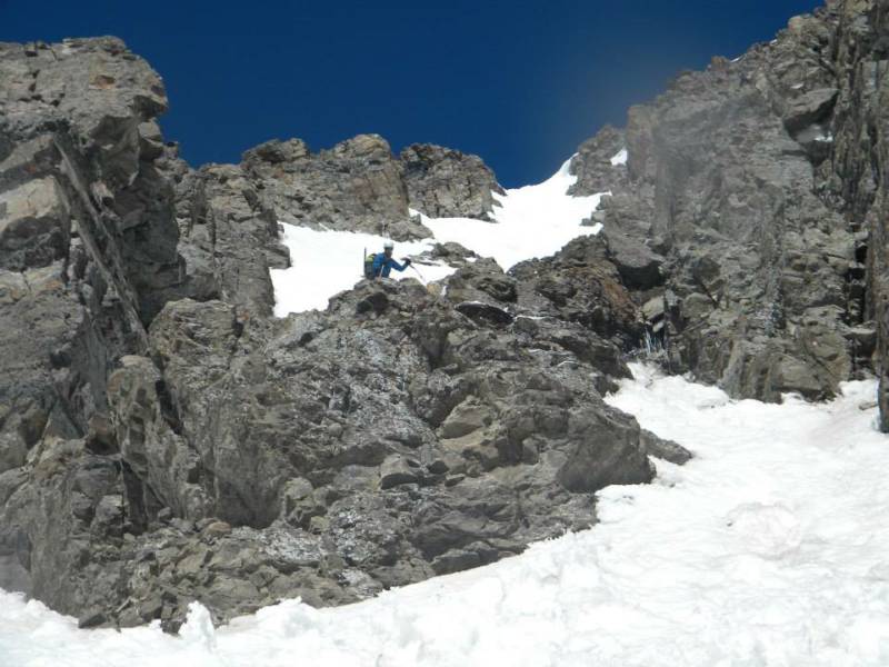 photo-Looking back up at the east couloir. Photo by Zach Taylor, 2013.
