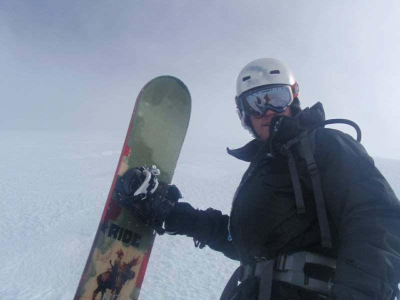 photo-Zach Taylor riding high on the Jamapa Glacier. photo by Jeff Kenney, 2009