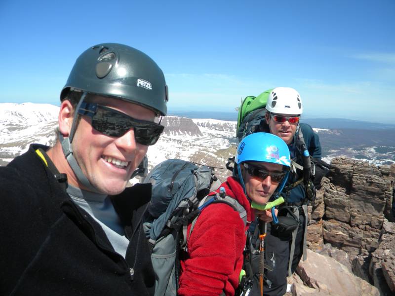 photo- from left to right; Sam Jordan, Joel Paula, and Zach Taylor on the summit of Kings Peak, 2012.