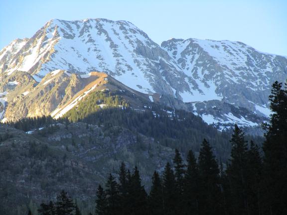photo- Treasure Mountain lit up in sunlight. photo by Zach Taylor, 2015.