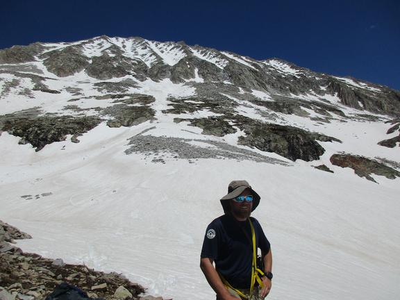 photo- Zach Taylor hanging out below the west face of Snowmass. photo by Joel Paula, 2015.